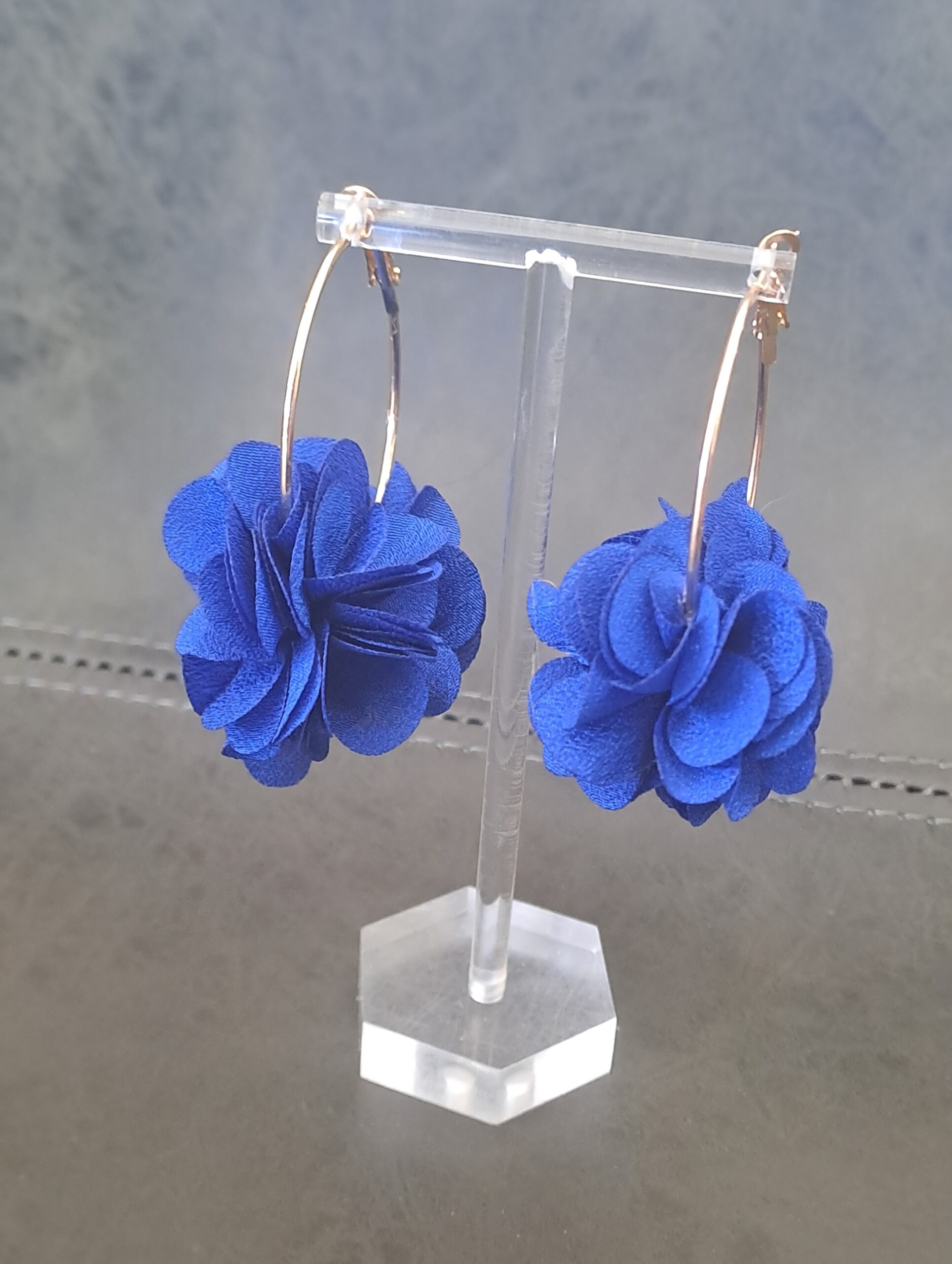 Blue and Gold Floral Hoop Earrings quantity