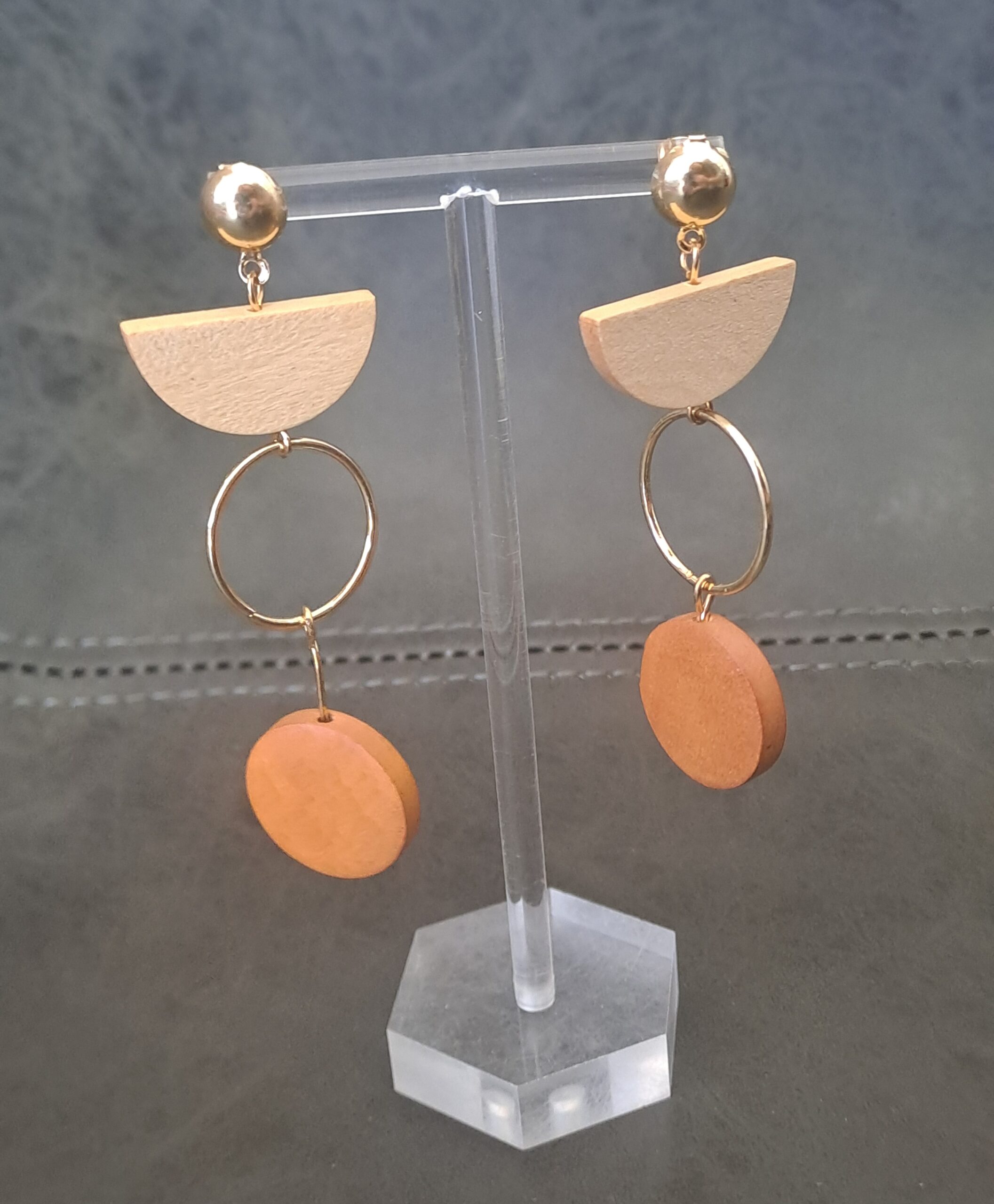 Circle Hoop Half Moon Wooden Drop Earrings