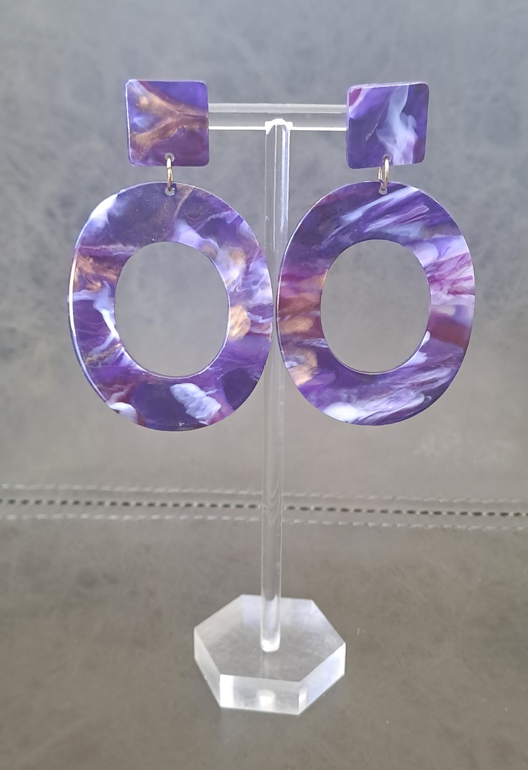 Large Purple Marble Drop Earrings